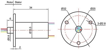 ■ 因我們的帽型滑環(huán)轉(zhuǎn)動扭矩很小,因此可將內(nèi)圈部分導(dǎo)線保護好后直接用于轉(zhuǎn)動或固定