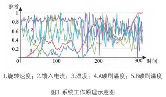實(shí)時(shí)監(jiān)測(cè)系統(tǒng)參考了《IEC61400》測(cè)試標(biāo)準(zhǔn)中的要求,并考慮了實(shí)際測(cè)試的需要,能實(shí)時(shí)采集與運(yùn)行狀態(tài)有關(guān)的各物理量如轉(zhuǎn)速、饋送電流、溫升、濕度、風(fēng)速、風(fēng)壓等。根據(jù)測(cè)試結(jié)果來分析碳刷與滑環(huán)之間的對(duì)偶材料更換、接觸電阻大小、接觸電阻變化量、冷卻方式和除塵方式優(yōu)化、磨損率快慢等因素的變化對(duì)電滑環(huán)運(yùn)行特性的影響。