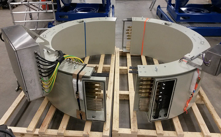 另一款我們又稱分體式盤式滑環(huán),分體式盤式滑環(huán)用于空間受限的應(yīng)用場(chǎng)合中,滑環(huán)不能安裝在單個(gè)部件的結(jié)構(gòu)上,適用于在現(xiàn)有的結(jié)構(gòu)之上添加滑環(huán),改善電纜或控制信號(hào)的傳輸方式,分體式盤式滑環(huán)可用于大型的卷筒,電纜制造機(jī),大型電機(jī)和不同的測(cè)試系統(tǒng)。